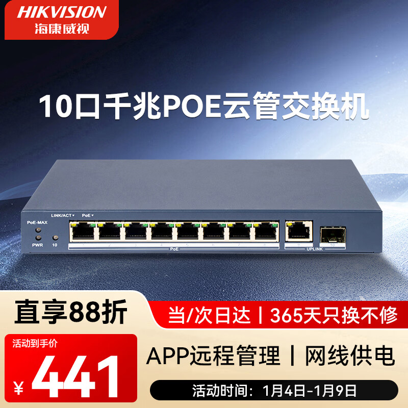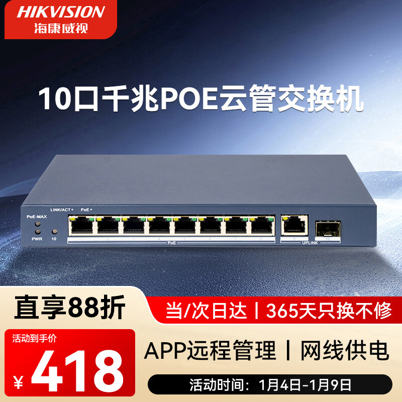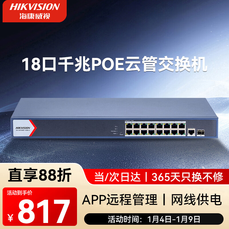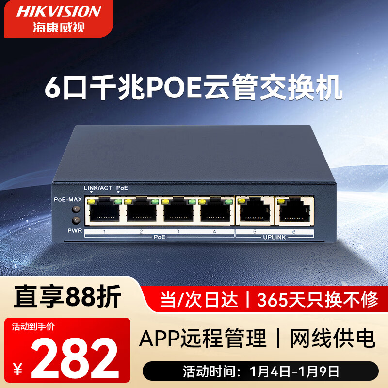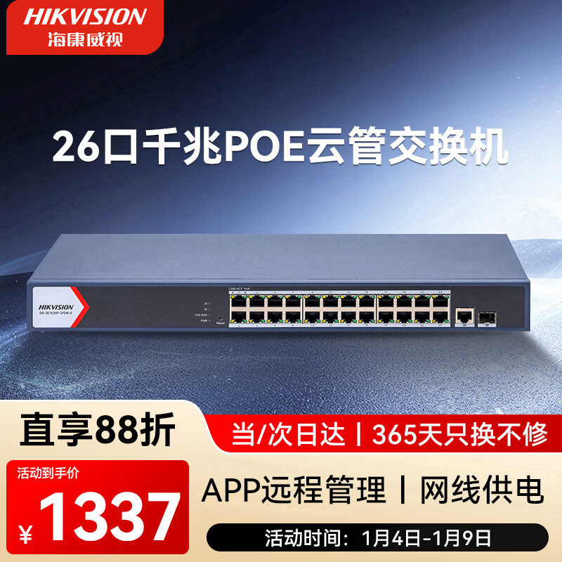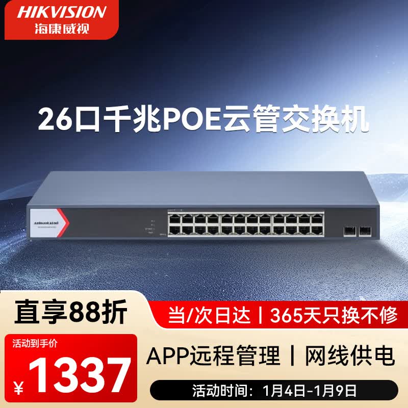 HIKVISION海康威视52口千兆交换机POE供电企业级交换器监控网络网线分线器分流器金属外壳散热DS-3E1552SP-E