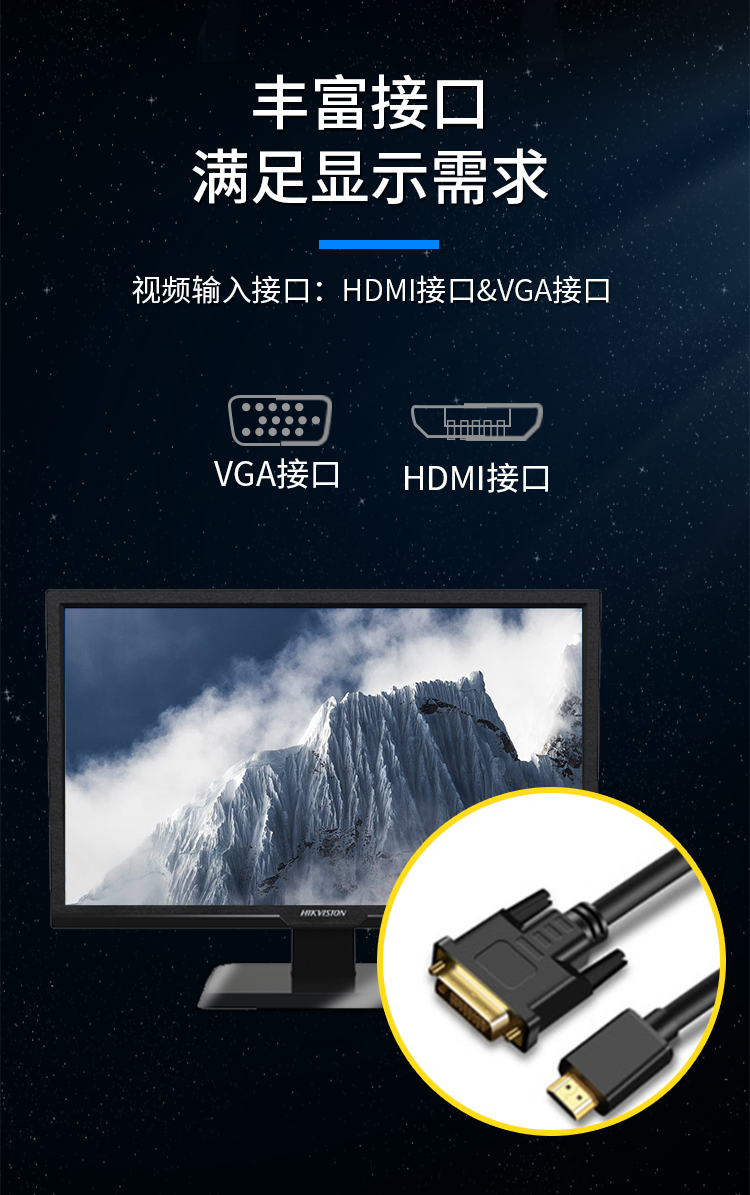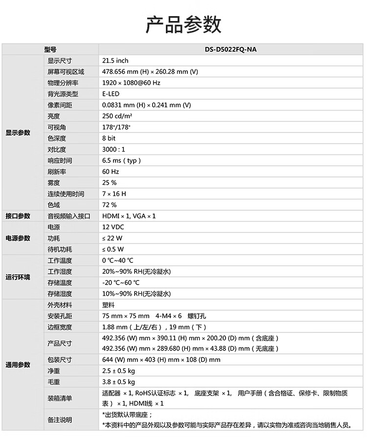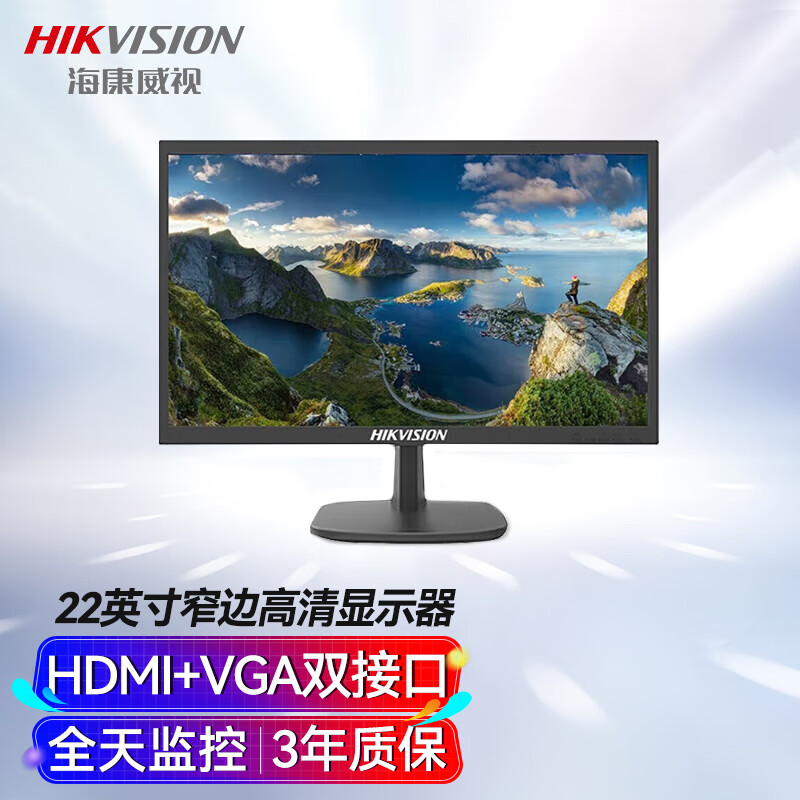 HIKVISION海康威视 22英寸1080P窄边框低功耗显示器D5022FQ-NA多接口全天候监控器台式机电脑显示屏