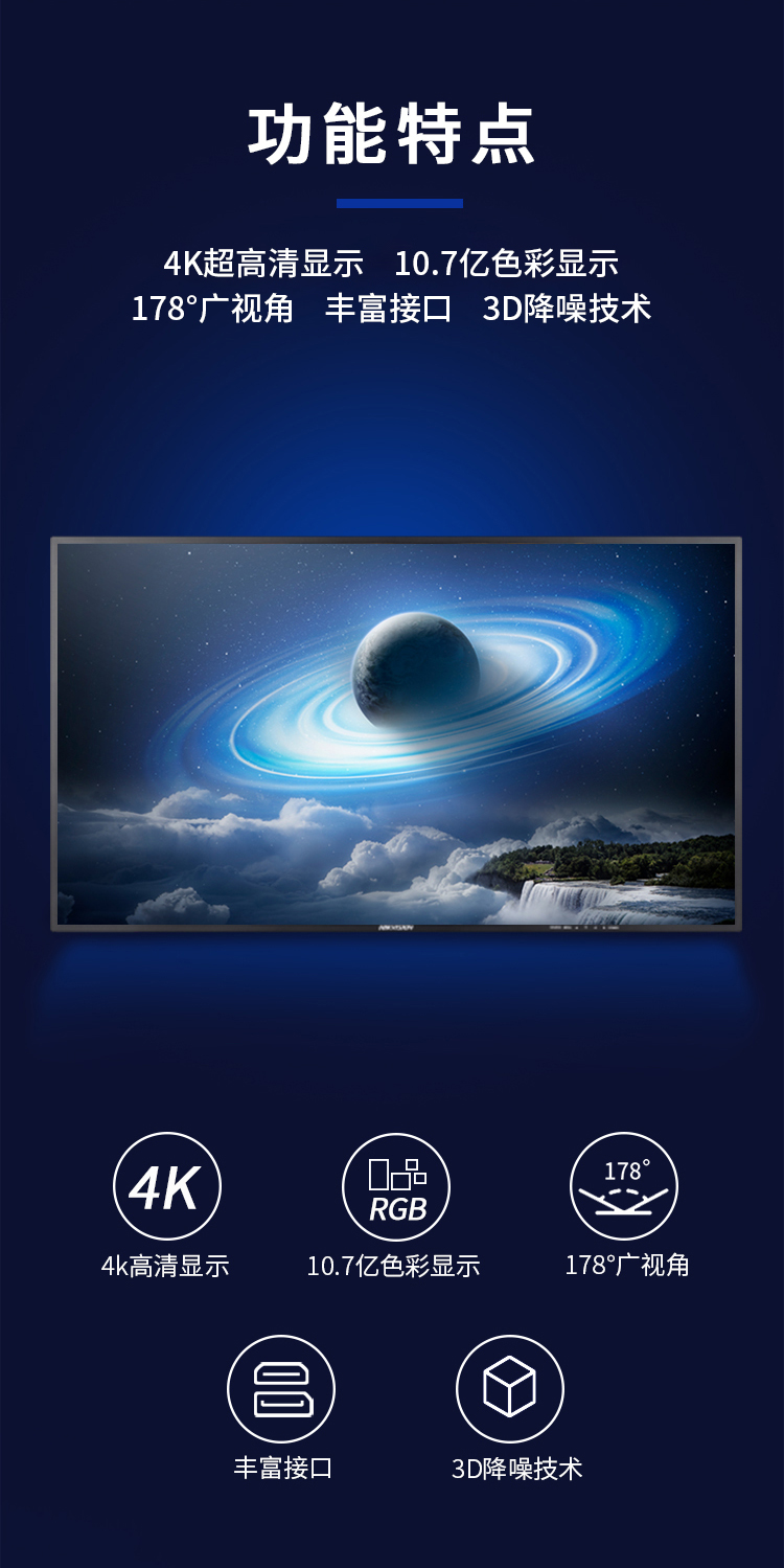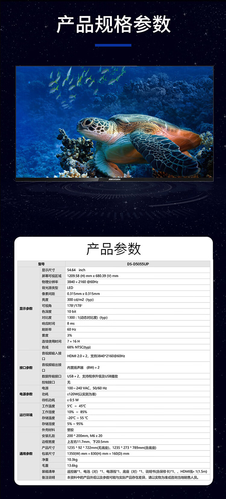 海康威视 55英寸4K超清窄边显示器DS-D5055UE低功耗多接口全天候监控显示器台式机电脑显示屏