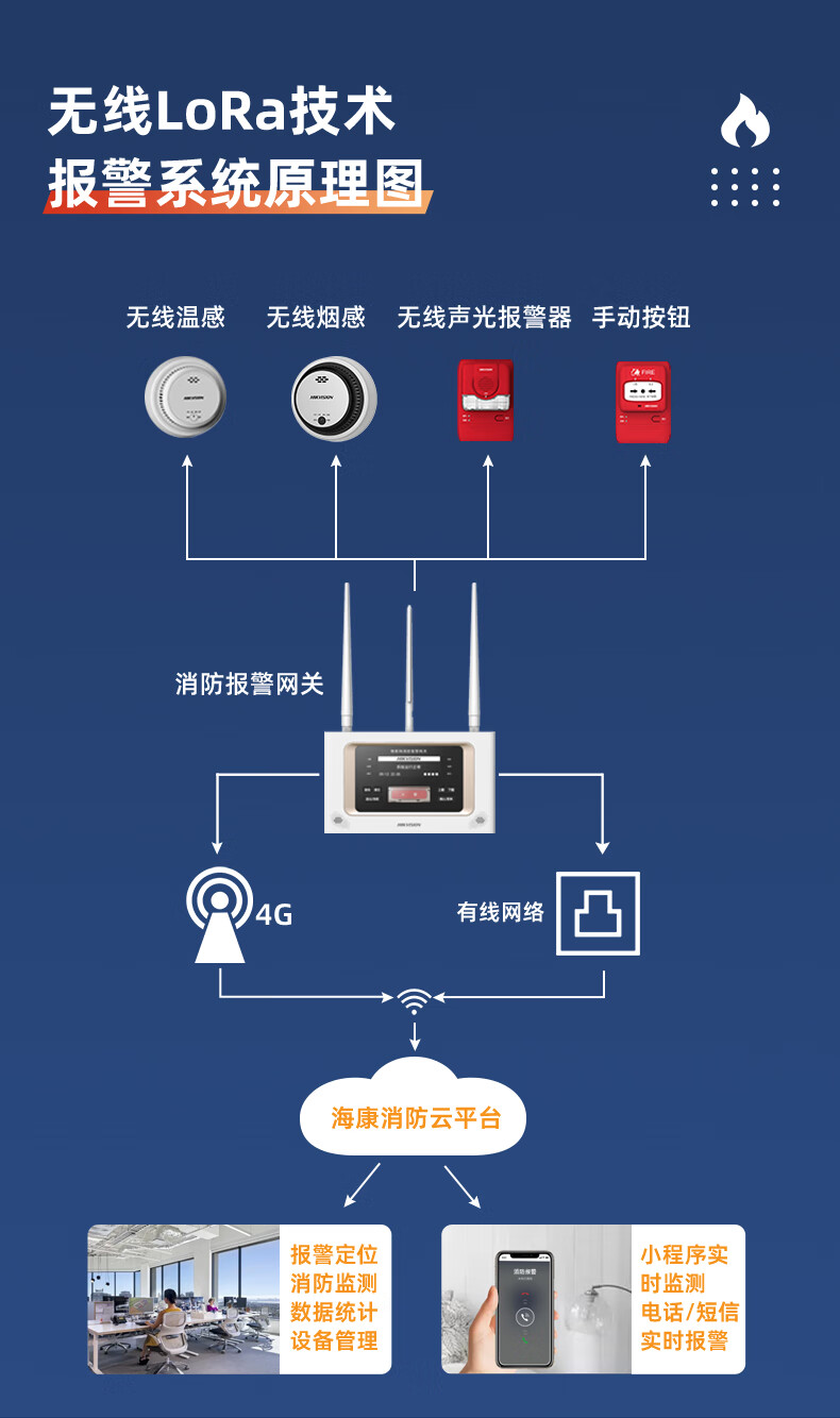 HIKVISION海康威视物联网消防报警网关无线LORA技术火灾消防烟雾报警系统控制器NP-G2(4G)(有线+4G版)