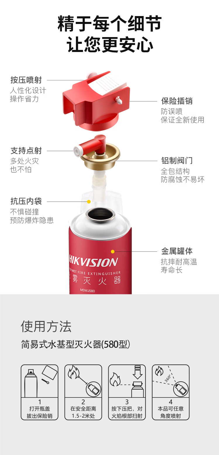HIKVISION海康威视水基灭火器车载车用家用汽车干粉灭火器便携消防器材