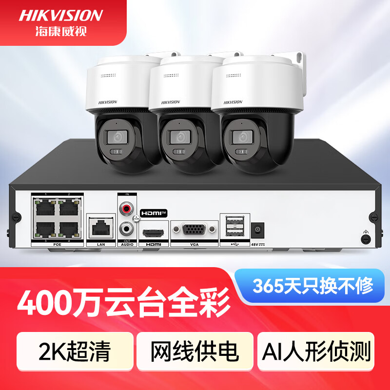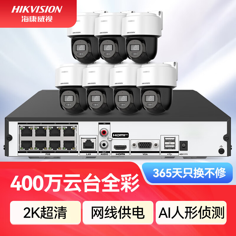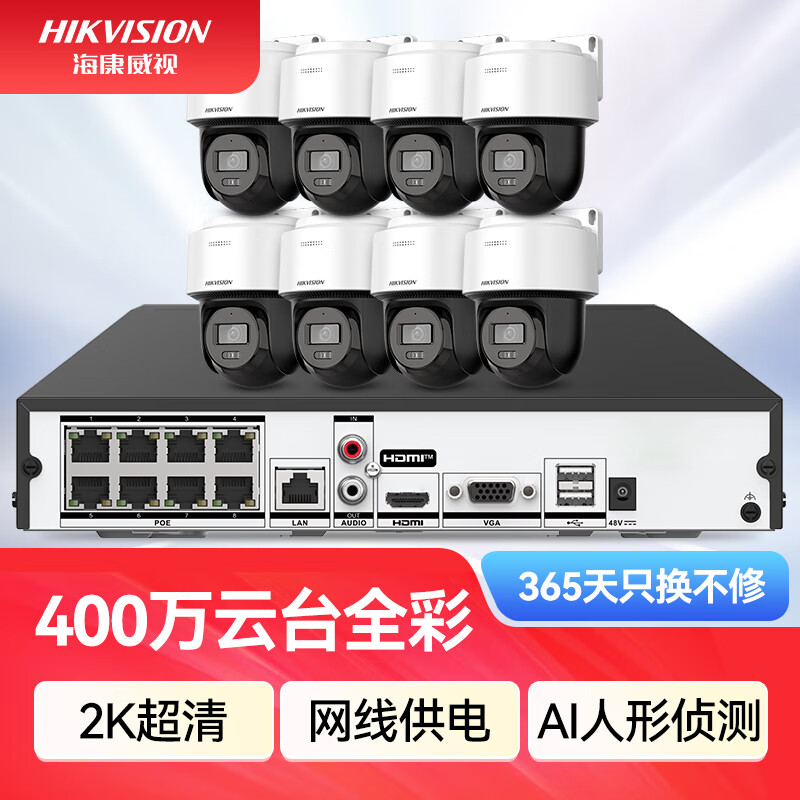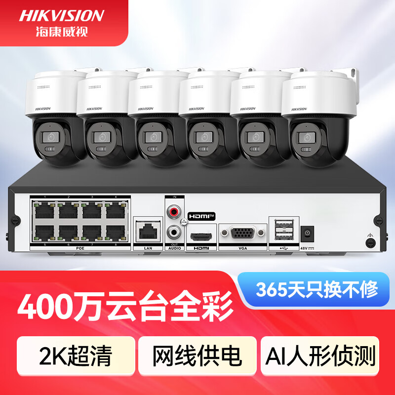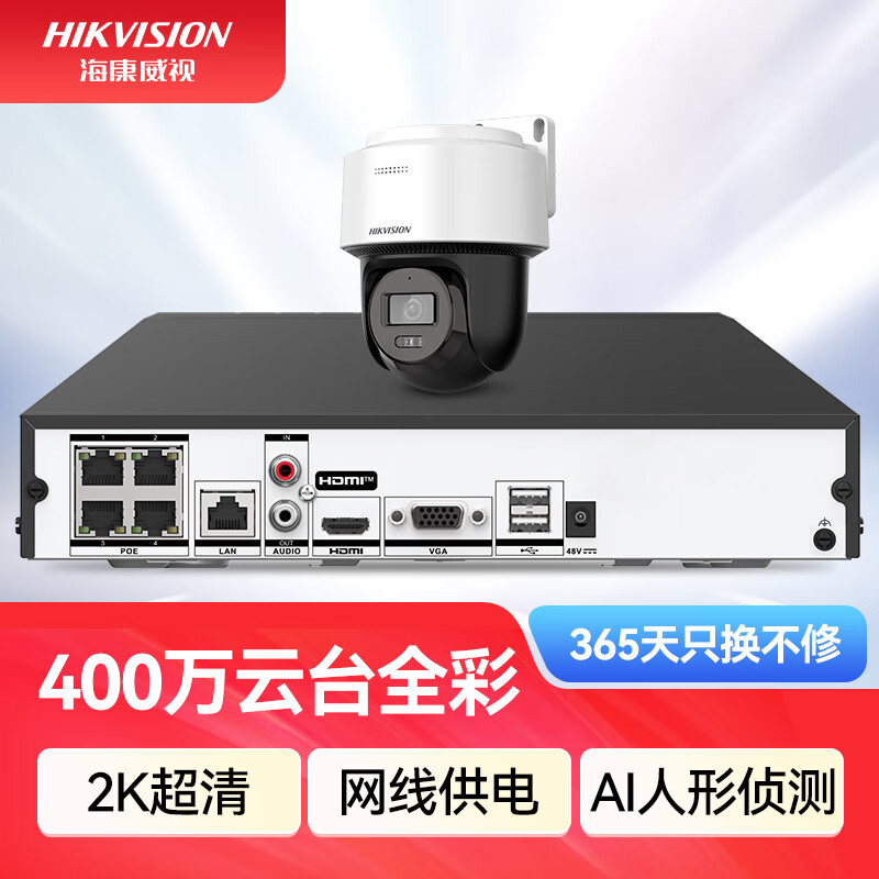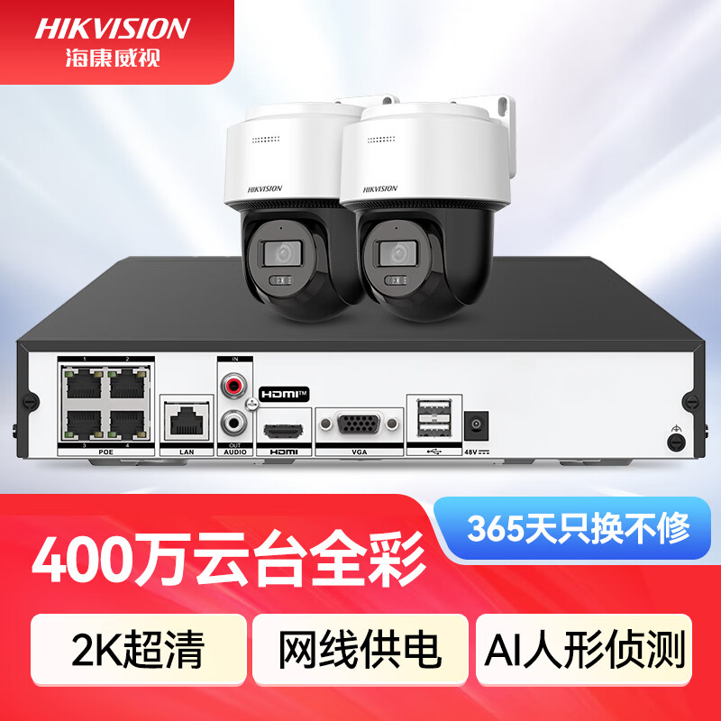 HIKVISION海康威视监控器摄像头400万高清全彩夜视360°全景POE供电室内外防水云台球机语音对讲2Q140MY-TE