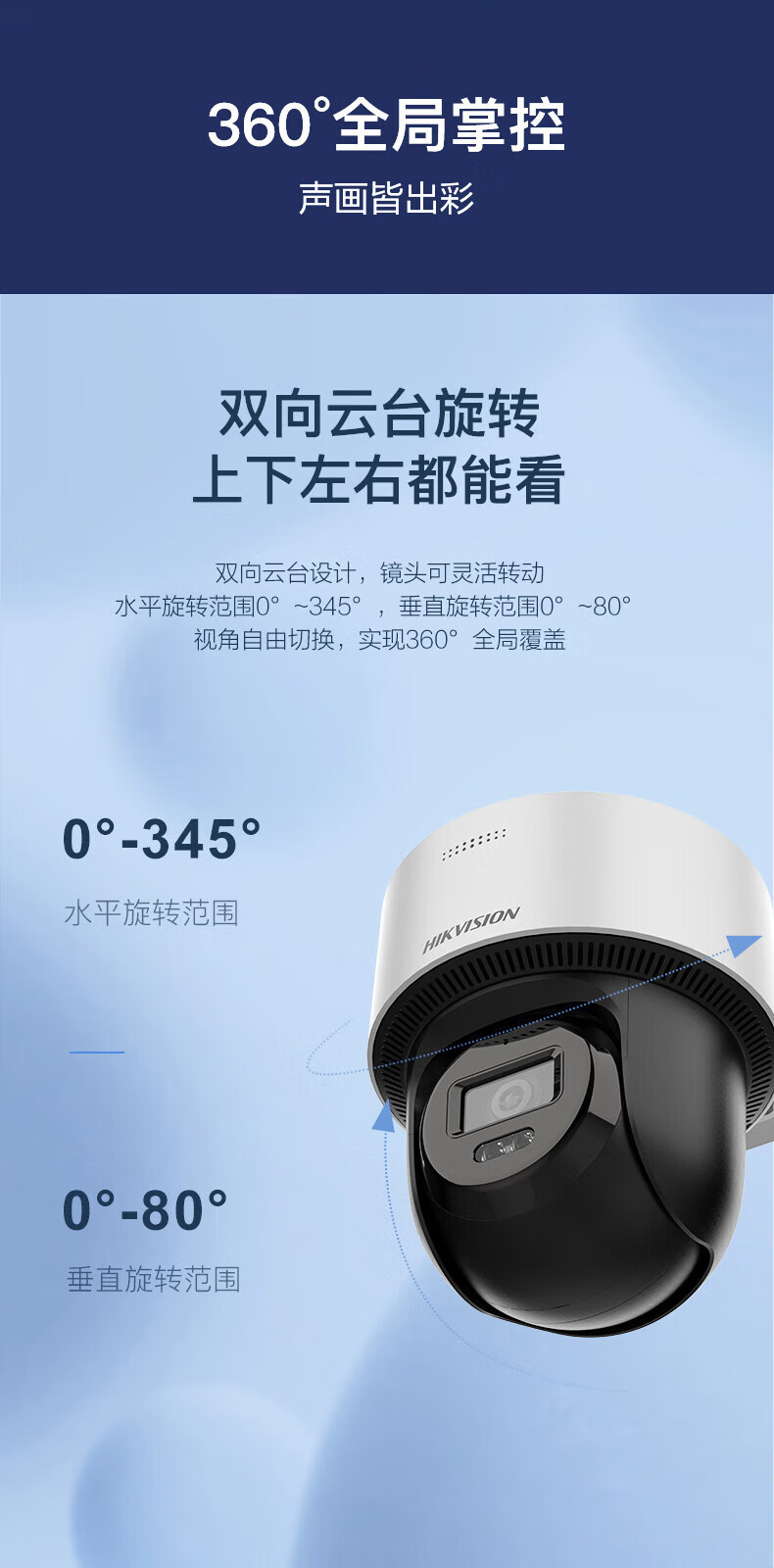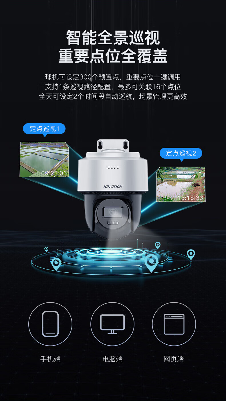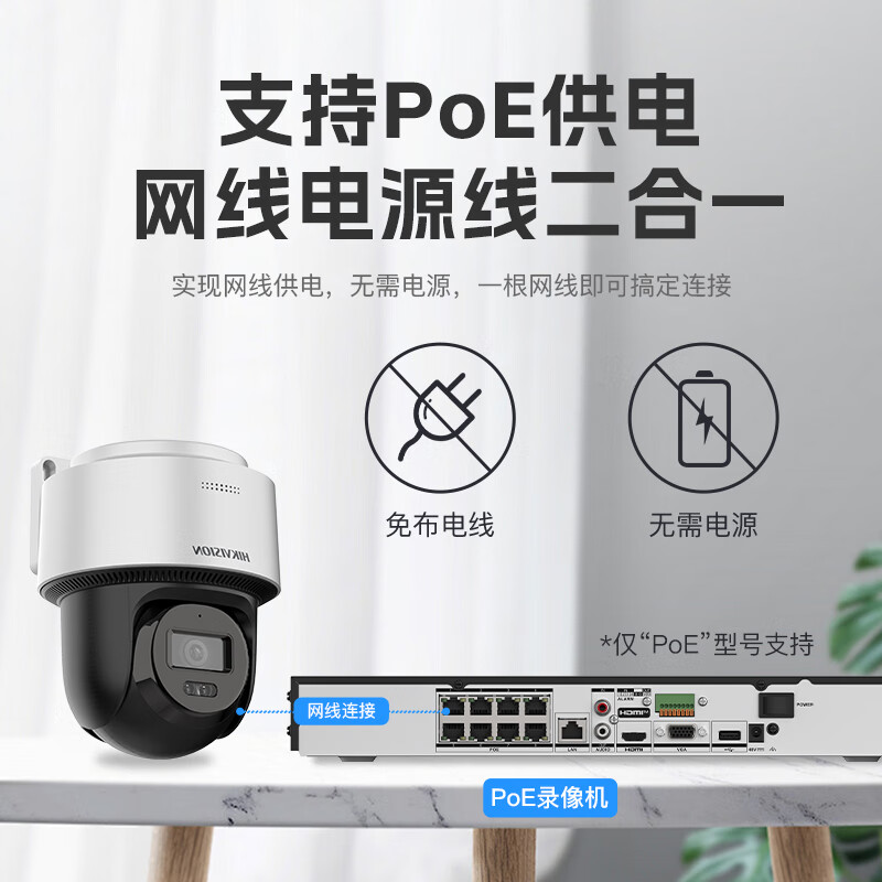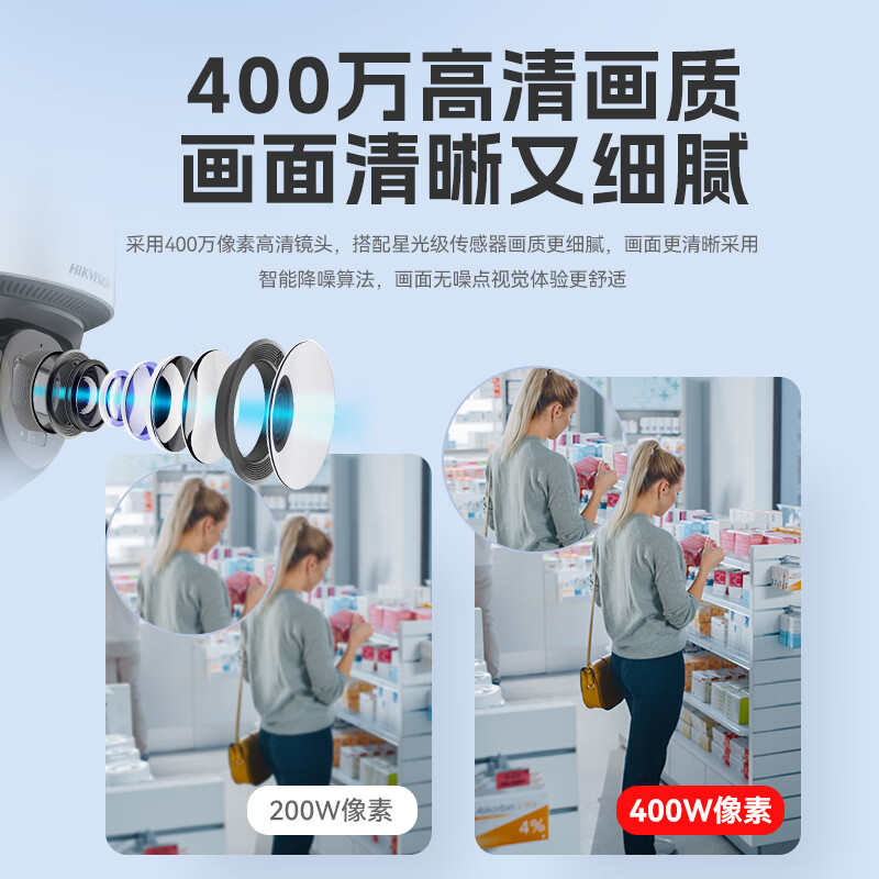 HIKVISION海康威视监控器摄像头400万高清全彩夜视360°全景POE供电室内外防水云台球机语音对讲2Q140MY-TE
