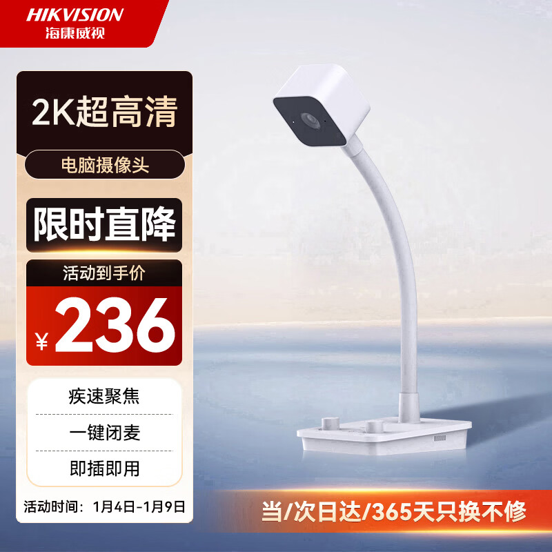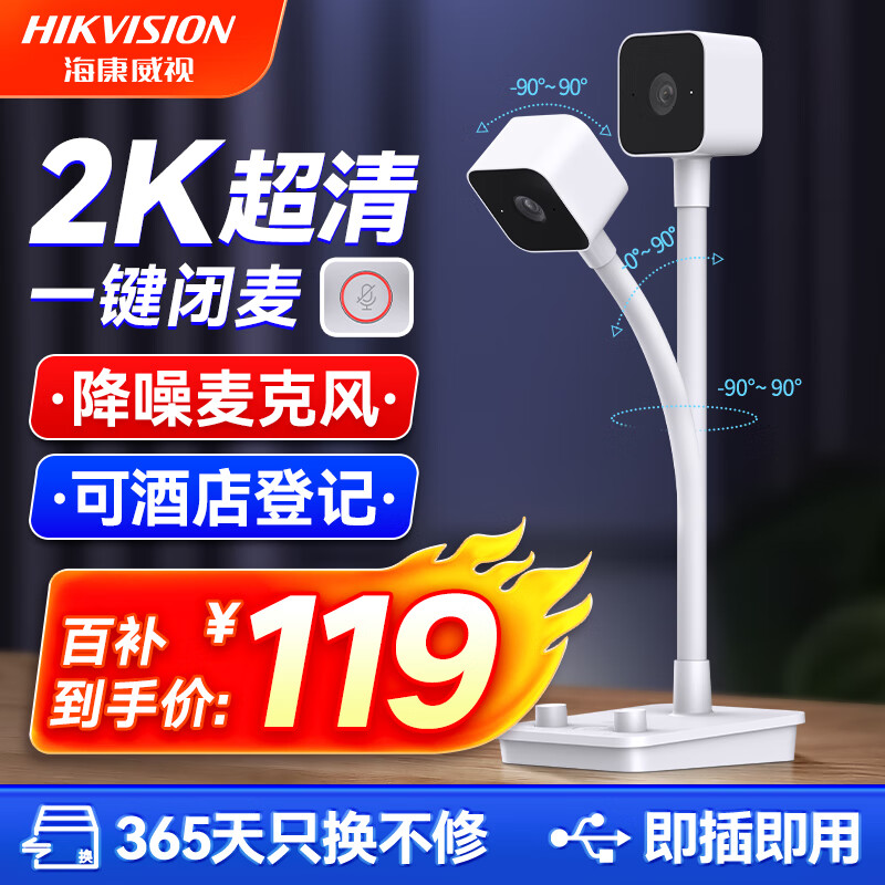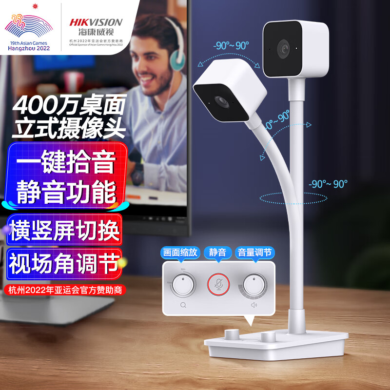 HIKVISION海康威视电脑摄像头直播2K高清带麦克风扬声器USB网课家用视频会议立式摄像机E24S