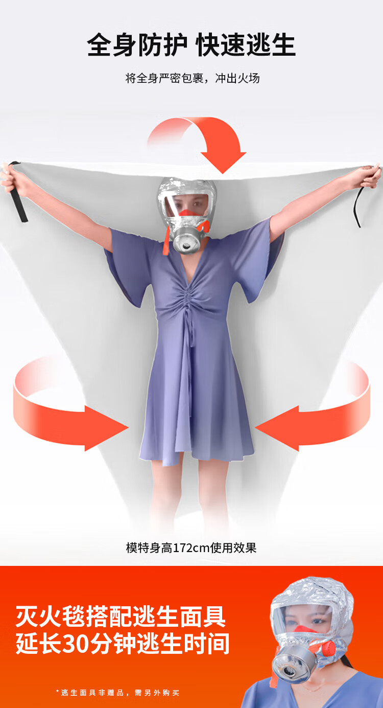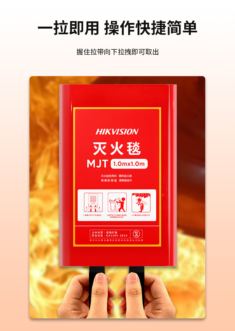 HIKVISION海康威视灭火毯救生毯酒店餐厅厨房办公室写字楼工厂车用玻璃纤维毯盒装逃生毯
