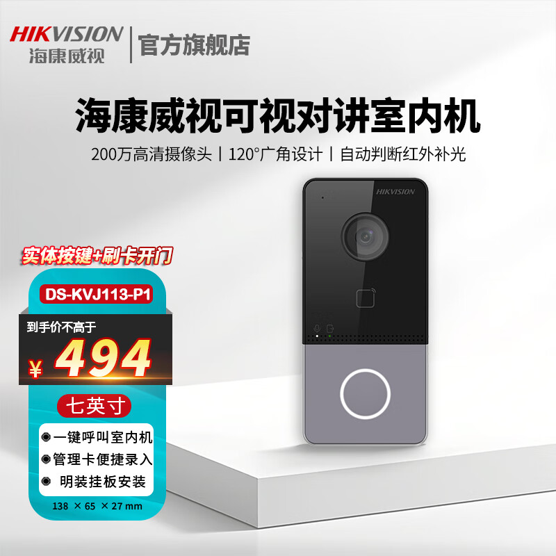 海康威视(HIKVISION) 可视对讲门禁系统无线电子门铃视频通话控制别墅楼宇对讲门禁系统DS-KIS1132-A1