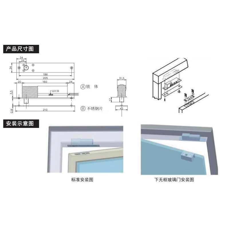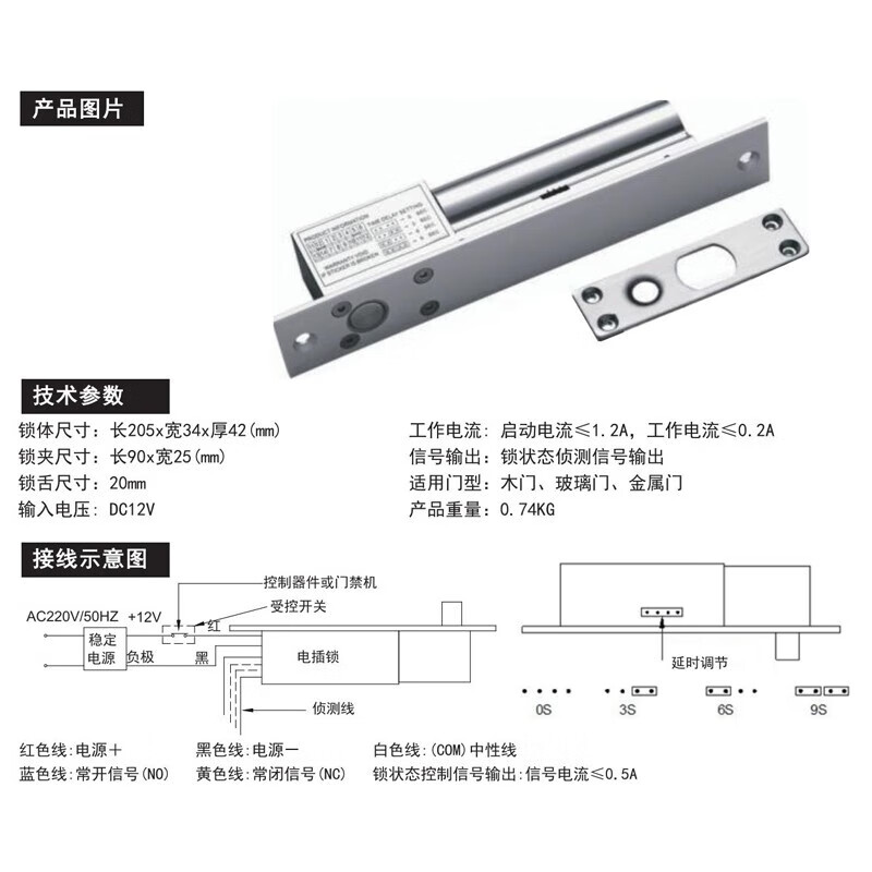 海康威视(HIKVISION) 电插锁单门双门木门铁门玻璃门 门禁锁 支架DS-K4T108