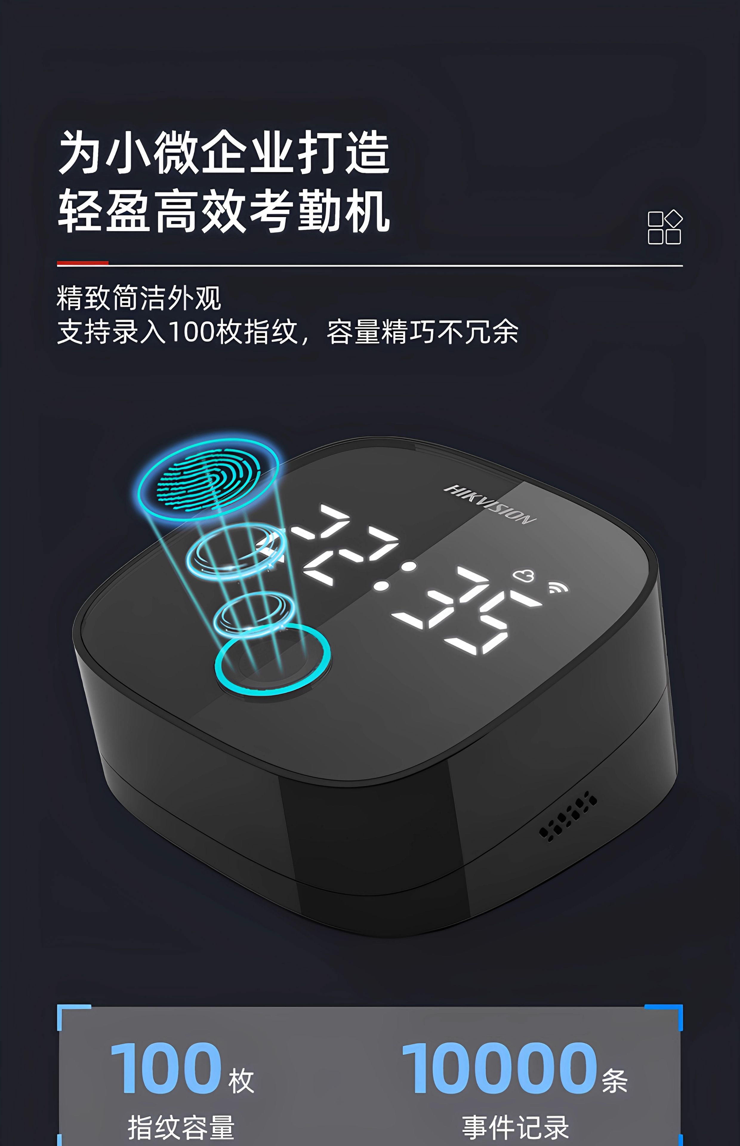 海康威视 企业公司人员签到上下班打卡机 快速人脸识别 F01S指纹+无线考勤
