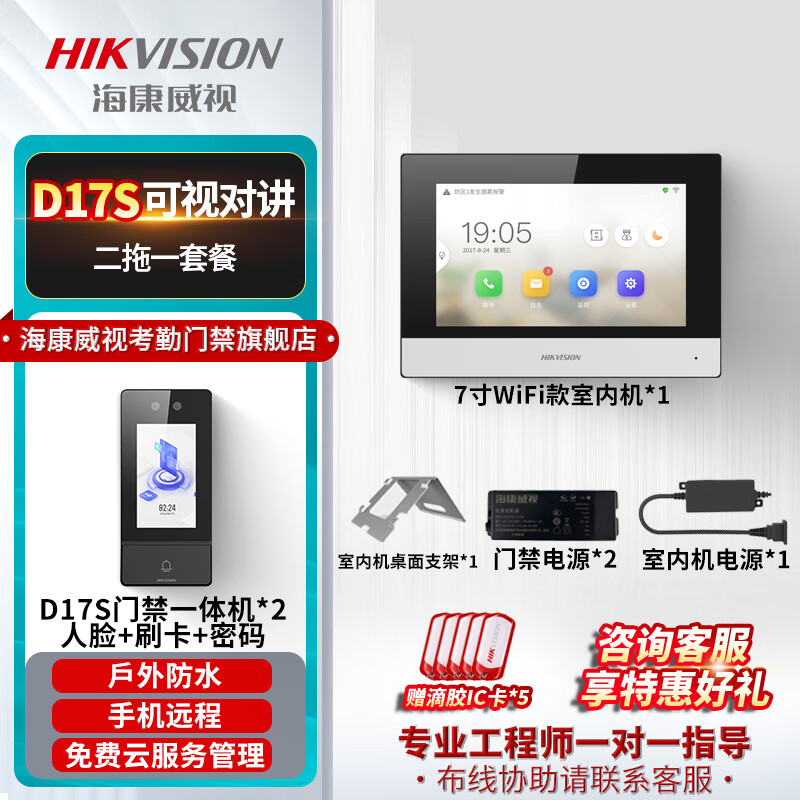 海康威视(HIKVISION)D17S系列无线门铃视频通话远程控制开门别墅楼宇对讲门禁系统电子门禁开门